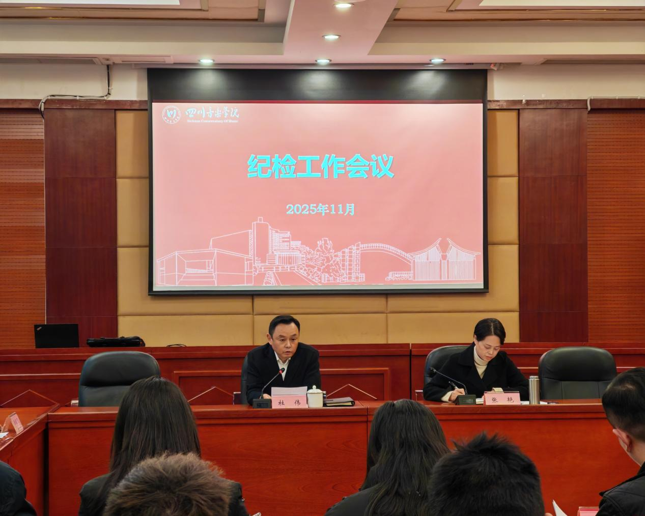 2025年11月24日,省纪委监委驻川音纪检监察组(校纪委)组织召开纪检工作会议。会议通报了驻川音纪检监察组2025年违纪违法案件查办情况,集体学习了相关纪法规定,并就近期纪检工作做安排。