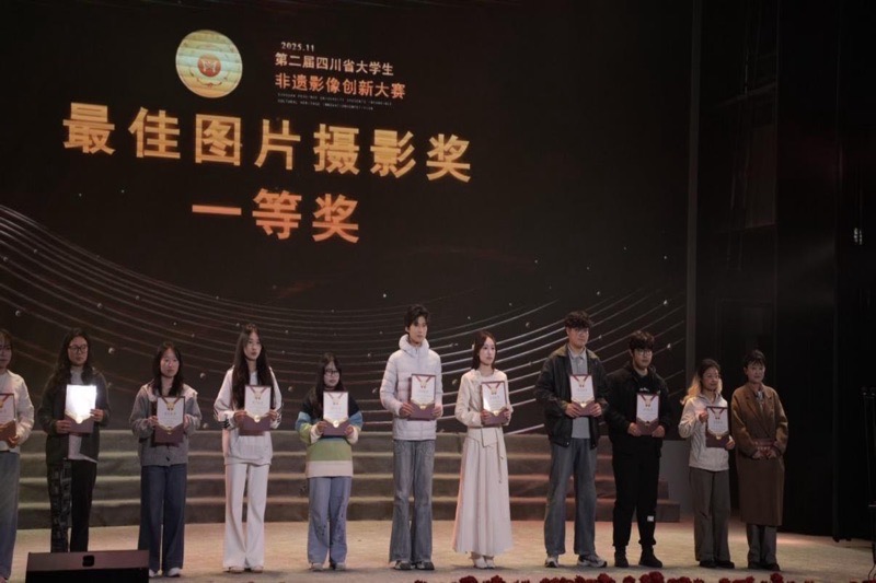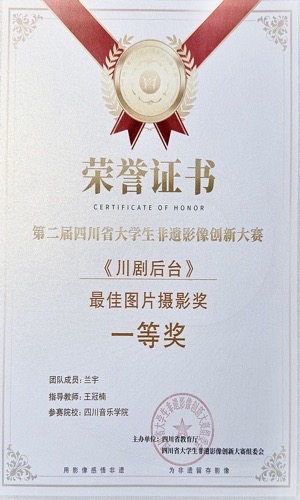 2025年11月21日,第二届四川省大学生非遗影像创新大赛颁奖典礼在四川电影电视学院圆满落幕。四川音乐学院传媒学院2024级影视摄影与制作专业学生兰宇凭借摄影作品《川剧后台》,荣获图片摄影单元一等奖,展现了学院在非遗影像教育与创作领域的扎实成果。