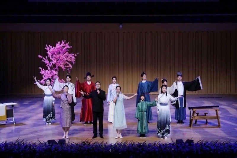 本次活动中,四川音乐学院传媒学院党委书记刘道莉和播音与主持艺术系教师李超担纲主持,传媒学院播音与主持艺术专业师生同台演绎的古诗词朗诵剧《古今回响》广受好评。