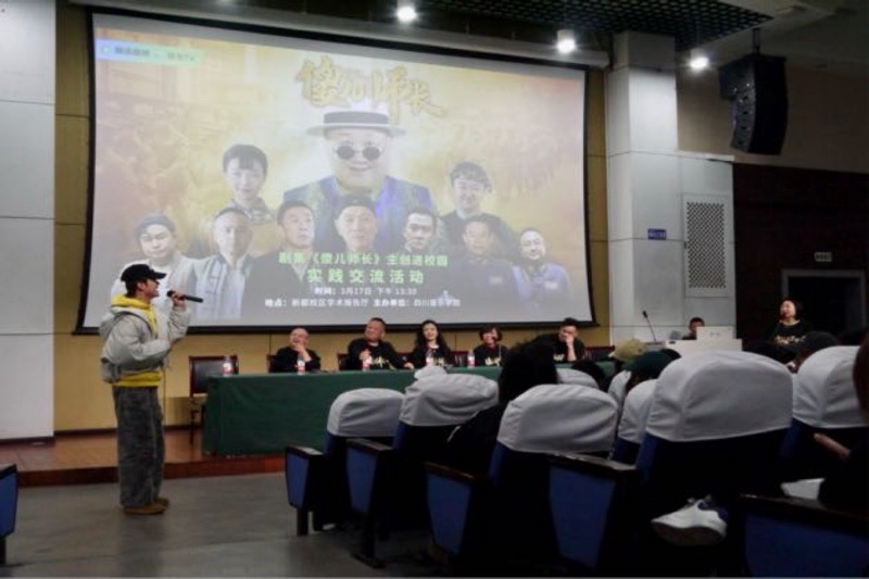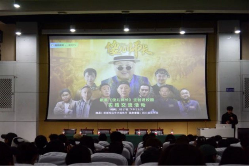 3月17日,2024年度四川省重大文艺扶持项目——川渝方言喜剧《傻儿师长》主创团队走进四川音乐学院,与在校学子展开文化交流。作为承办方之一,传媒学院组织百余名师生全程参与活动。