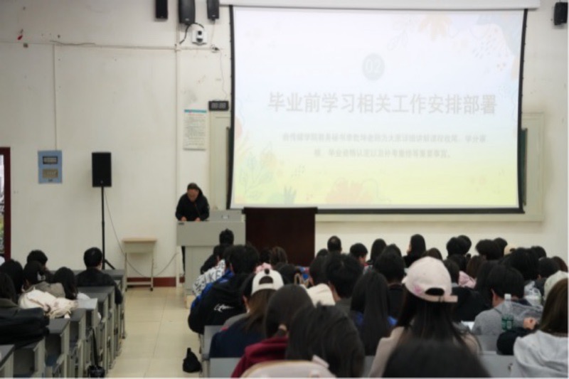 教学秘书李乾坤老师与辅导员罗娜分别就毕业前的学习安排作说明,重点讲解了课程收尾、学分审核、档案派遣与户口转移等事宜,叮嘱同学们按时完成学业任务。