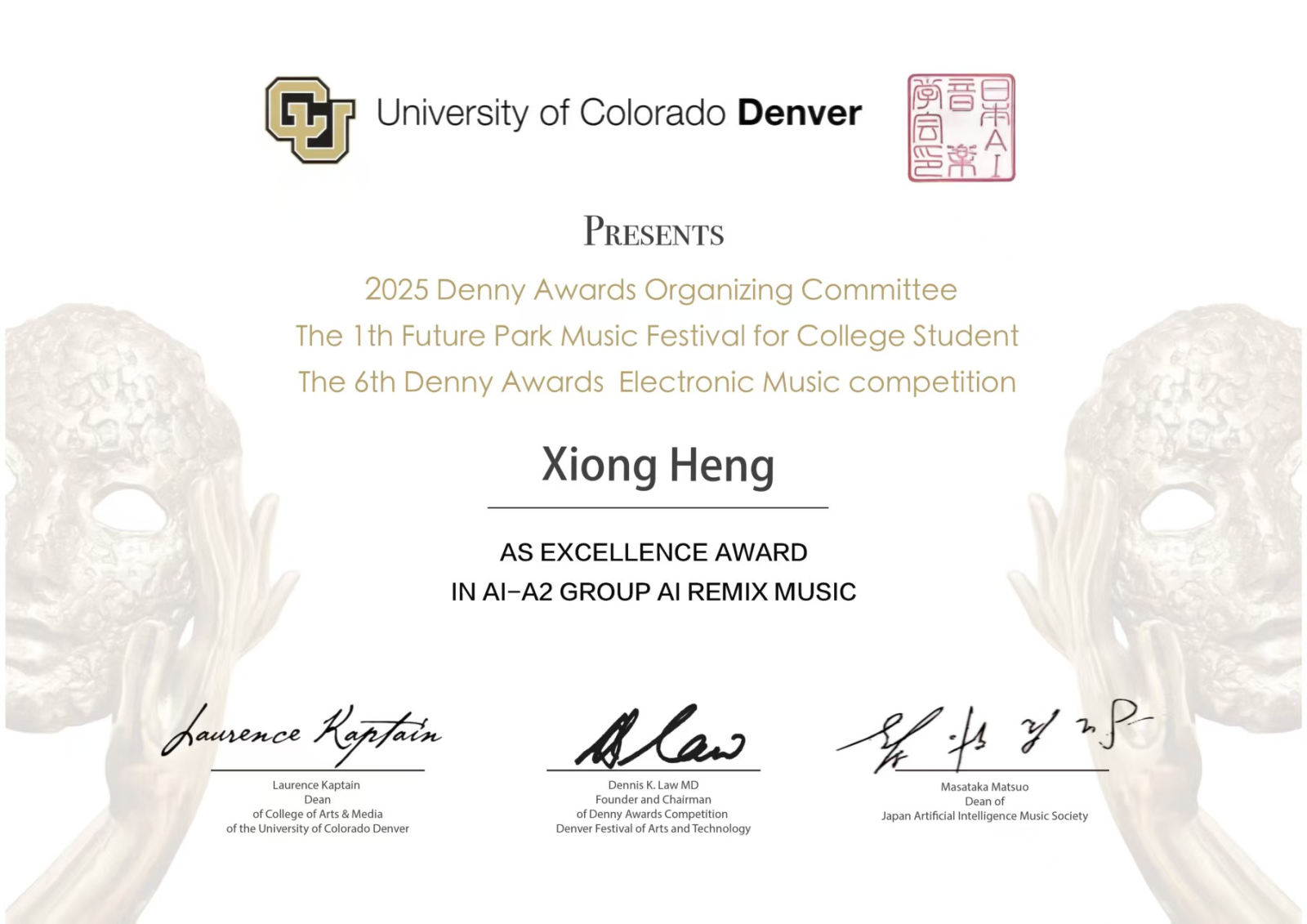丹尼奖国际电子音乐比赛(Denny Awards)是丹佛国际科技艺术节(DIFAT)的重要活动之一,鼓励青年人追求卓越、超越自我的音乐创新与文化创意,为全球原创音乐搭建国际化的跨界交流平台。