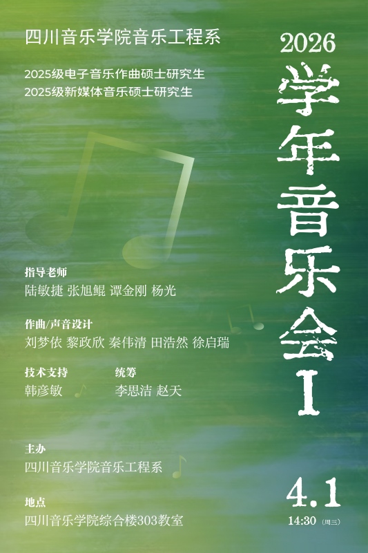 徐启瑞,四川音乐学院音乐工程系2025级电子音乐作曲方向研究生,师从张旭鲲副教授。