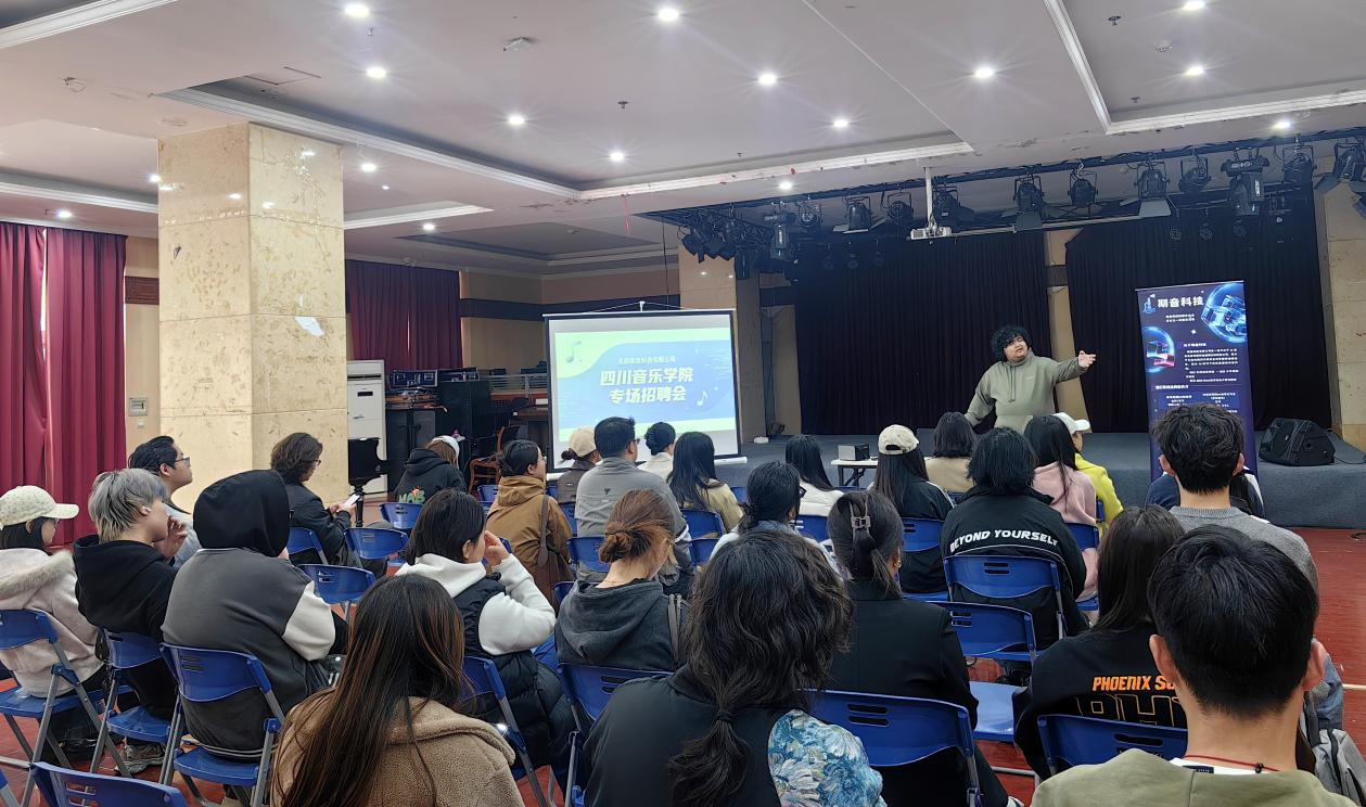2026年3月31日,为积极响应学校就业办关于促进毕业生高质量充分就业的号召,进一步拓展学生就业渠道,深化校企合作,川音音乐工程系积极组织并动员各年级学生参加了成都期音信息科技有限公司(简称:期音科技)校园专场招聘宣讲会。