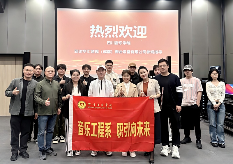 为深入贯彻落实党中央、国务院关于高校毕业生就业工作的决策部署,扎实推进“访企拓岗”促就业专项行动,进一步深化校企合作、拓宽毕业生就业渠道,4月15日,四川音乐学院音乐工程系党委书记邓舒,系党委副书记、系主任徐静平,系纪委书记、副系主任陆敏捷,系主任助理韩彦敏,本科2023级班主任沈忱,辅导员张琼伟及学生代表一行,前往华汇音视(成都)舞台设备有限公司开展调研交流。