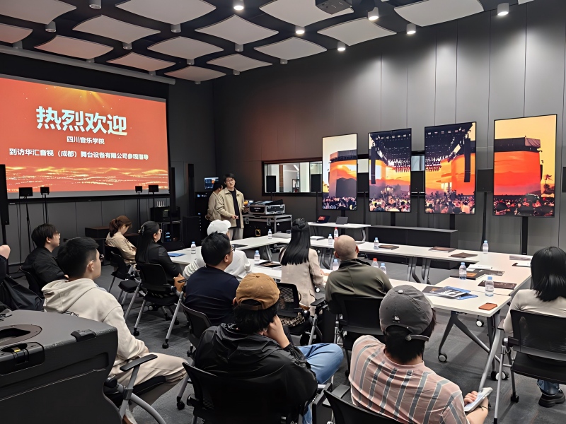 公司负责人郑娟女士热情接待并详细介绍企业情况。华汇音视(成都)成立于2019年,是华汇集团布局西南的重要平台。集团1997年在香港创立,专注国际尖端音响技术落地,为剧场、演出、电视台提供集成解决方案,业务覆盖舞台设备、音响销售、舞台及灯光设计等,行业影响力突出。