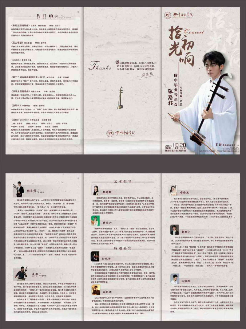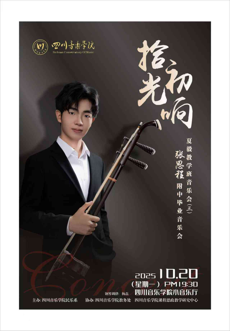 民乐系二胡专业教师夏毅教学班“拾光初响——张思程附中毕业音乐会”将于2025年10月20日晚7点30分于四川音乐学院小音乐厅举行。