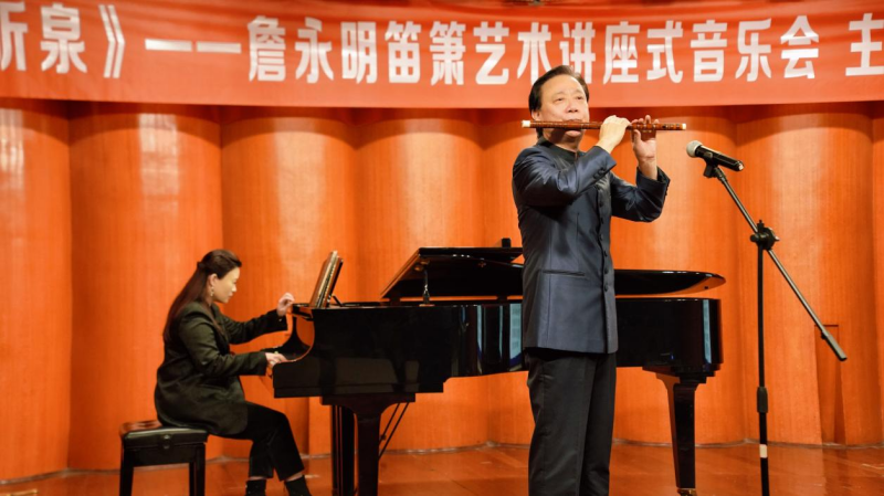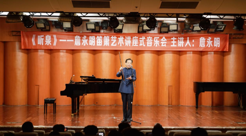 秋阳正好,笛韵悠扬。11月4日上午,四川音乐学院聂耳音乐厅座无虚席,“听泉——詹永明笛箫艺术讲座式音乐会”在此圆满落幕。作为民乐系第三届艺术实践周的重要活动之一,本场音乐会以“讲座+演奏”的形式,为师生与笛箫爱好者带来一场兼具学术深度与艺术表现力的竹笛艺术之旅。