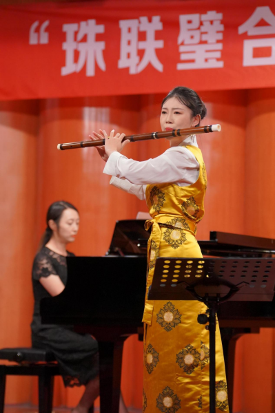 本次音乐会共演出了《胡杨映月》《云开日出》《跑马山随想》《竹石图》《兰亭》《江河云梦》共六首作品。演出形式涵盖竹笛、琵琶、笙、古筝、二胡等多种民族乐器与钢琴的协奏配合,充分展现出民乐与钢琴在音响层次、情感表达与艺术张力上的深度融合。各位演奏者技艺精湛、情感真挚,与钢琴艺术指导配合默契,体现了四川音乐学院民乐系学生扎实的专业功底与活跃的艺术创造力。