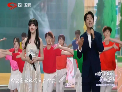 在2025年四川省第41个教师节主题活动中,各校各文艺团体的演出让观众无不深深陶醉。来自四川音乐学院声乐歌剧学院的同学袁西贝与数位姊妹学院的同学也携手登上四川卫视的舞台,用美妙歌声为教师节献上最诚挚的祝福。
