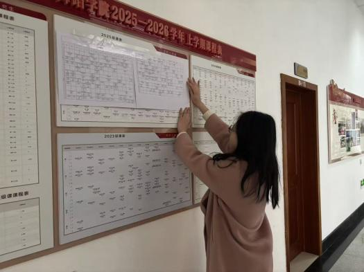 为保障教学工作平稳落地,学院以严谨细致的态度,抓实抓细各项开学筹备工作。办公室老师们提前完成了课表拟定与核对,确保课程安排科学无冲突;提前张贴课表,方便师生查阅;全面核对新学期教材,逐一确认版本、数量,保障教材及时到位,以扎实的筹备工作为新学期教学开好头、起好步。