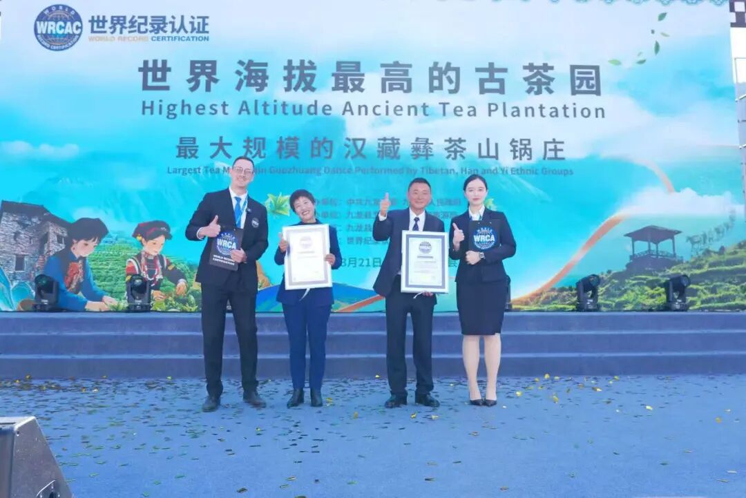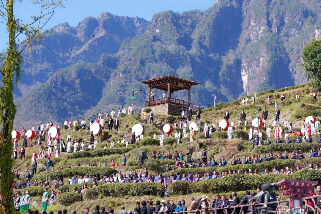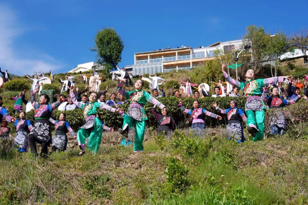 活动现场全面开花,亮点纷呈。礼仪岗学子端庄优雅,值守茶坊迎宾与会务接待,尽显素养风采;云端茶垄间,学子身着民族服饰踏茶而行,交融民族美学与自然生态;主舞台上,《甲沱珑巴》《采茶姑娘》《鹰之舞》《云上天乡》等精品节目轮番上演,刚柔并济、意境悠远;护航“世界海拔最高古茶园”揭牌,参与最大规模汉藏彝“喊山祈茶”祈福仪式和千人普米锅庄,见证两项世界纪录成功诞生,用舞蹈队形、肢体表达烘托仪式氛围,助力九龙打响地域文化名片。