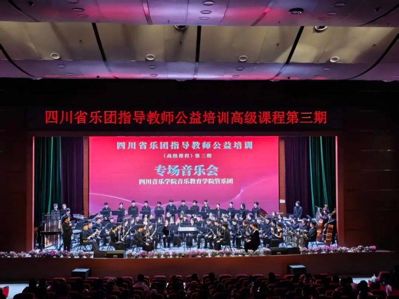 2026年3月26—29日,由四川省教育厅主办的四川省乐团指导教师公益培训项目顺利举办。本次培训覆盖全省19个市(州),参训大中小学教师共计480人,活动内容包括专家讲座、现场排练、专场音乐会及汇报展演等多个环节。四川音乐学院音乐教育学院师生积极参与本次项目,李晓明、郝奥、廖珊、内聘教师范和丰四位教师带领学生志愿者全程助力,为培训顺利开展提供了有力保障。