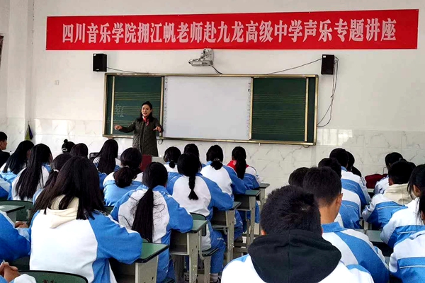 在下午的声乐专题讲座上,四川音乐学院声乐支教老师拥江帆为在校的声乐艺术特长生讲授演唱方法和技巧,了解每位学生的声乐演唱基础,并、现场解答学生对声乐演唱所遇到的困难和问题,并重点解决学生的呼吸和发声问题。同时,我校杨可老师也对高级中学现有的钢琴进行了调律和维修。