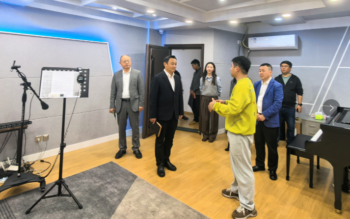 在成都葫芦文化传媒有限公司,调研组一行实地参观了企业办公场所、创作工作室、录音棚等核心设施,并与在岗的我校毕业生深入交流,详细了解企业运营、业务开展及人才需求情况。企业负责人介绍了公司十年创业历程、核心业务布局及用人标准,分享了团队凭借“坚持”精神深耕行业的经历,并结合行业实践对学校人才培养提出建议。杜伟对企业发展成果、行业影响力及企业文化予以高度肯定。他表示,葫芦文化作为我校校友创办的优秀企业,十年沉淀,制作了《玉盘》《吉量》等脍炙人口的高品质作品,在央视春晚等平台推广,获得极大的社会影响。其创业故事是学校人才培养的生动榜样。他希望以此次走访为契机,进一步建立密切联系,用好校友企业资源,紧跟产业导向,共同培育适应行业发展的高素质音乐人才,为毕业生拓宽就业路径、夯实职业发展平台。